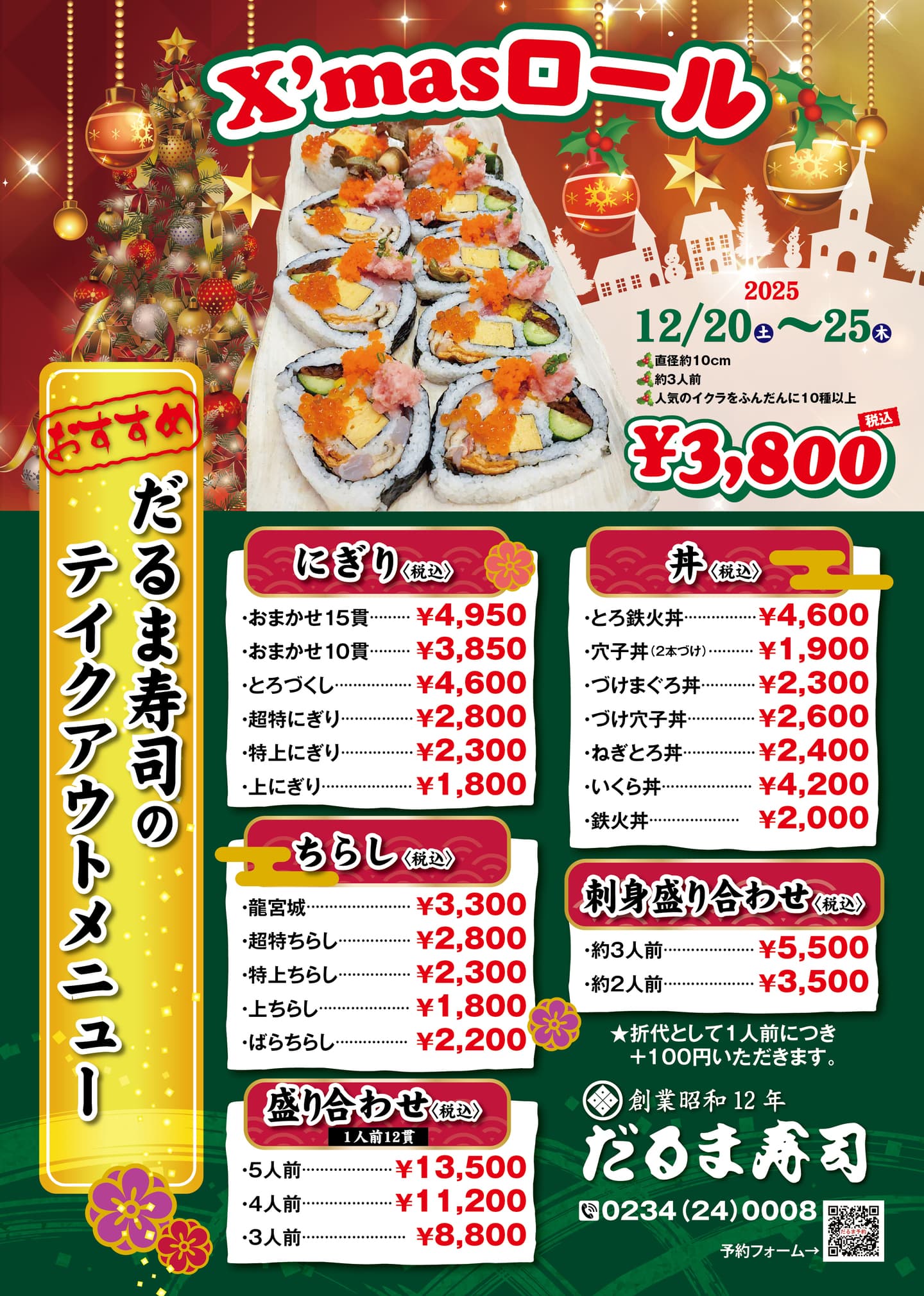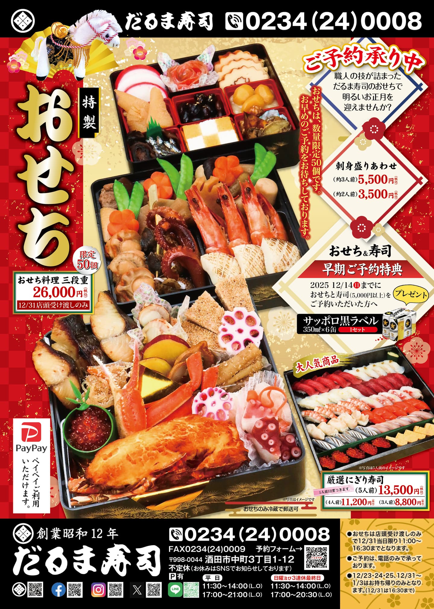 ,facebook,,{"facebookPageUrl":"https://www.facebook.com/darumasushi.sakata","boxHeight":"556","boxWidth":"100","dispFace":false,"dispUpdate":true,"dispHeader":true,"wUnit":"%","hUnit":"px"} TOP | おせち& X'masロール