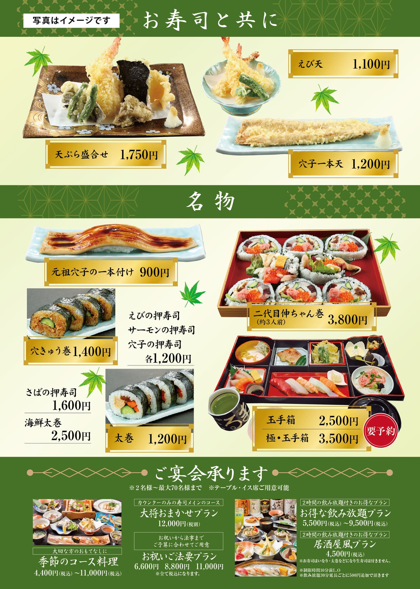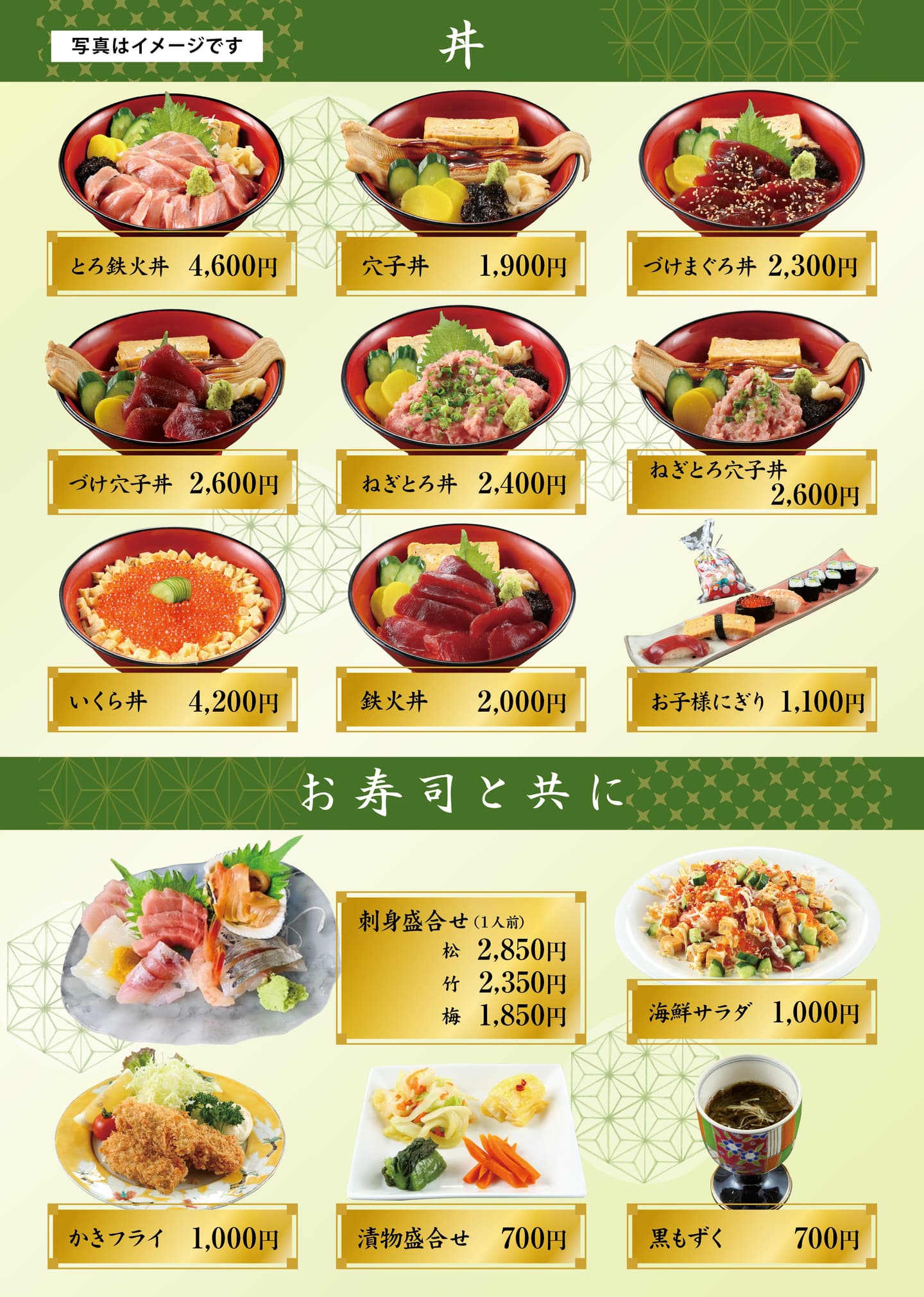 【ディナー】写真メニューに加え、毎日、季節の商品、旬のメニューを取り揃え、寿司・丼・刺身のみならず、様々なメニューが楽しめます。