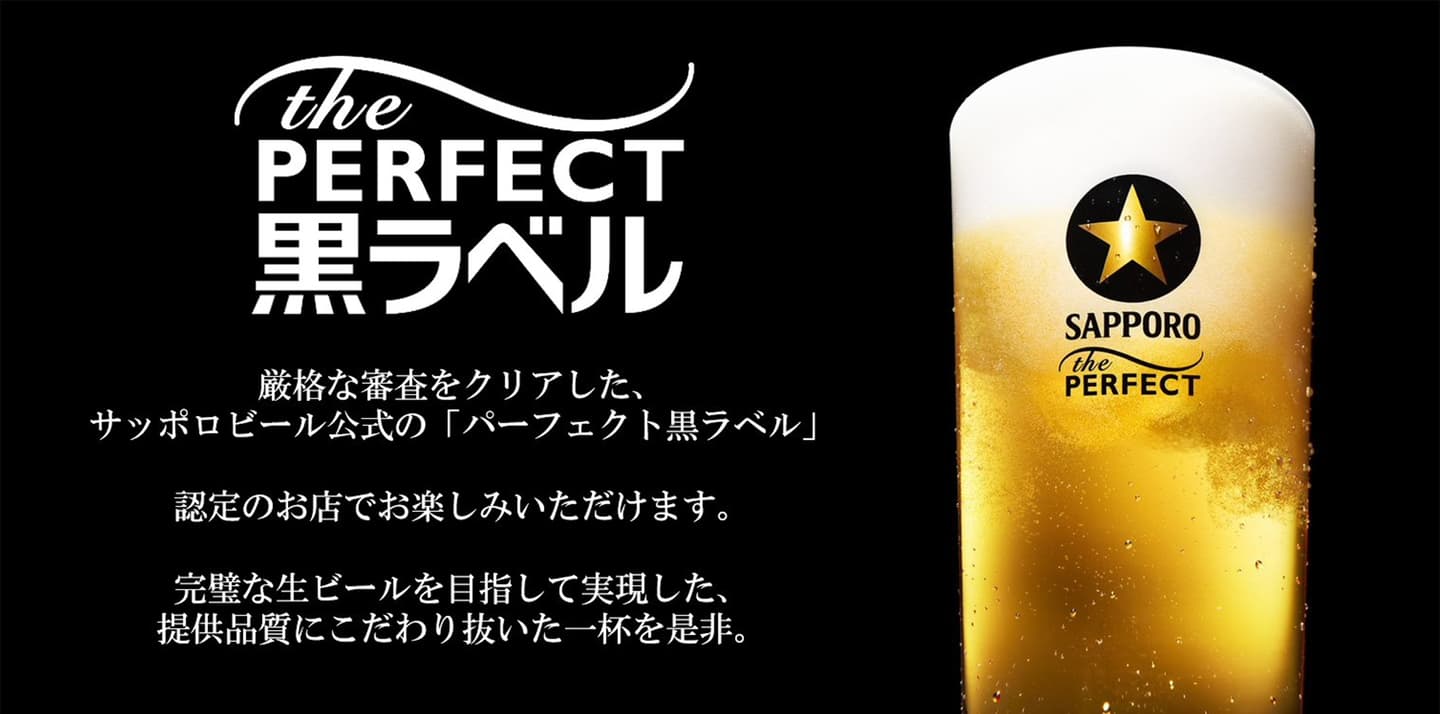 又、サッポロ生ビールは数少ない「ザ・パーフェクト黒ラベル」販売店舗に認定されております。