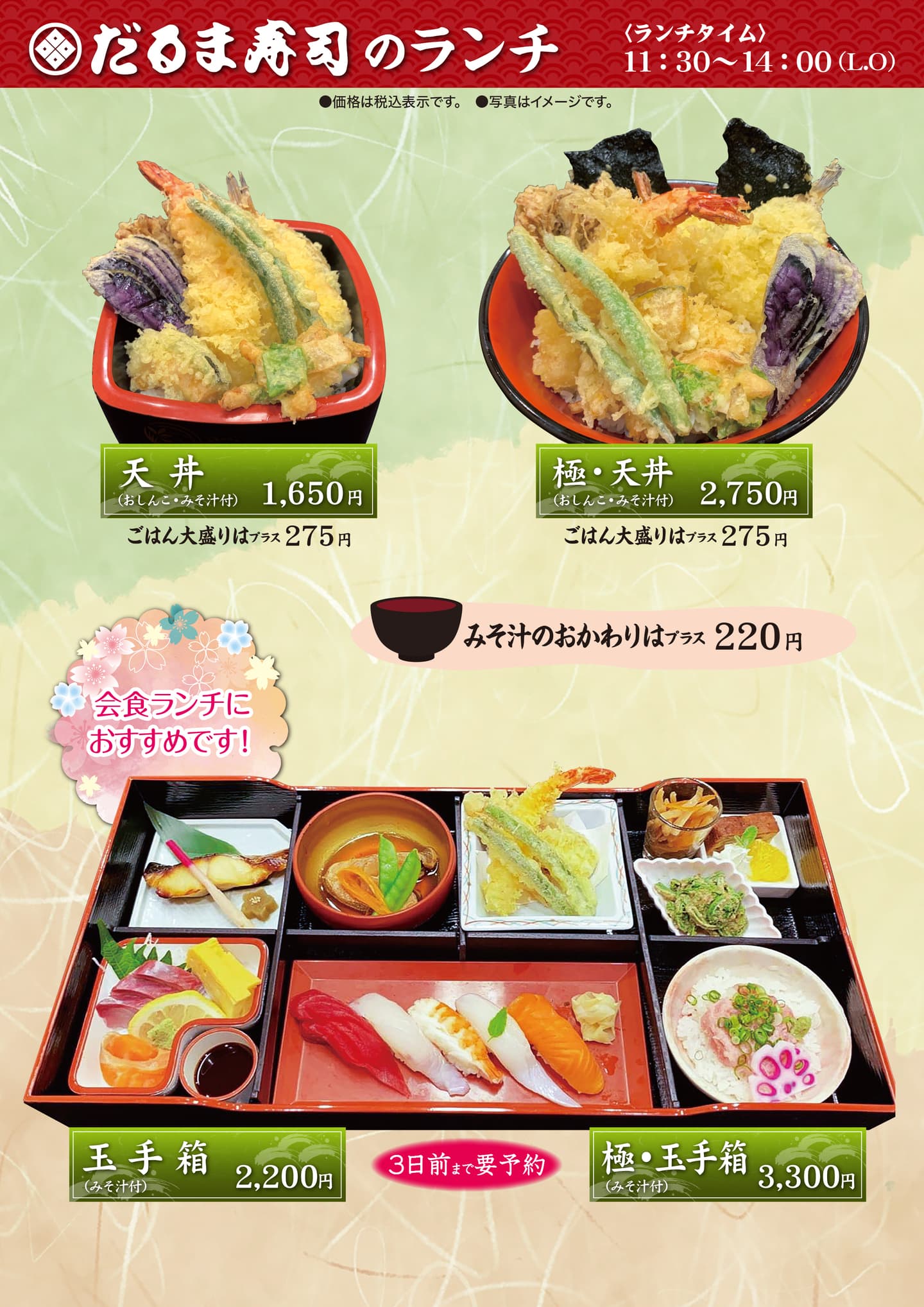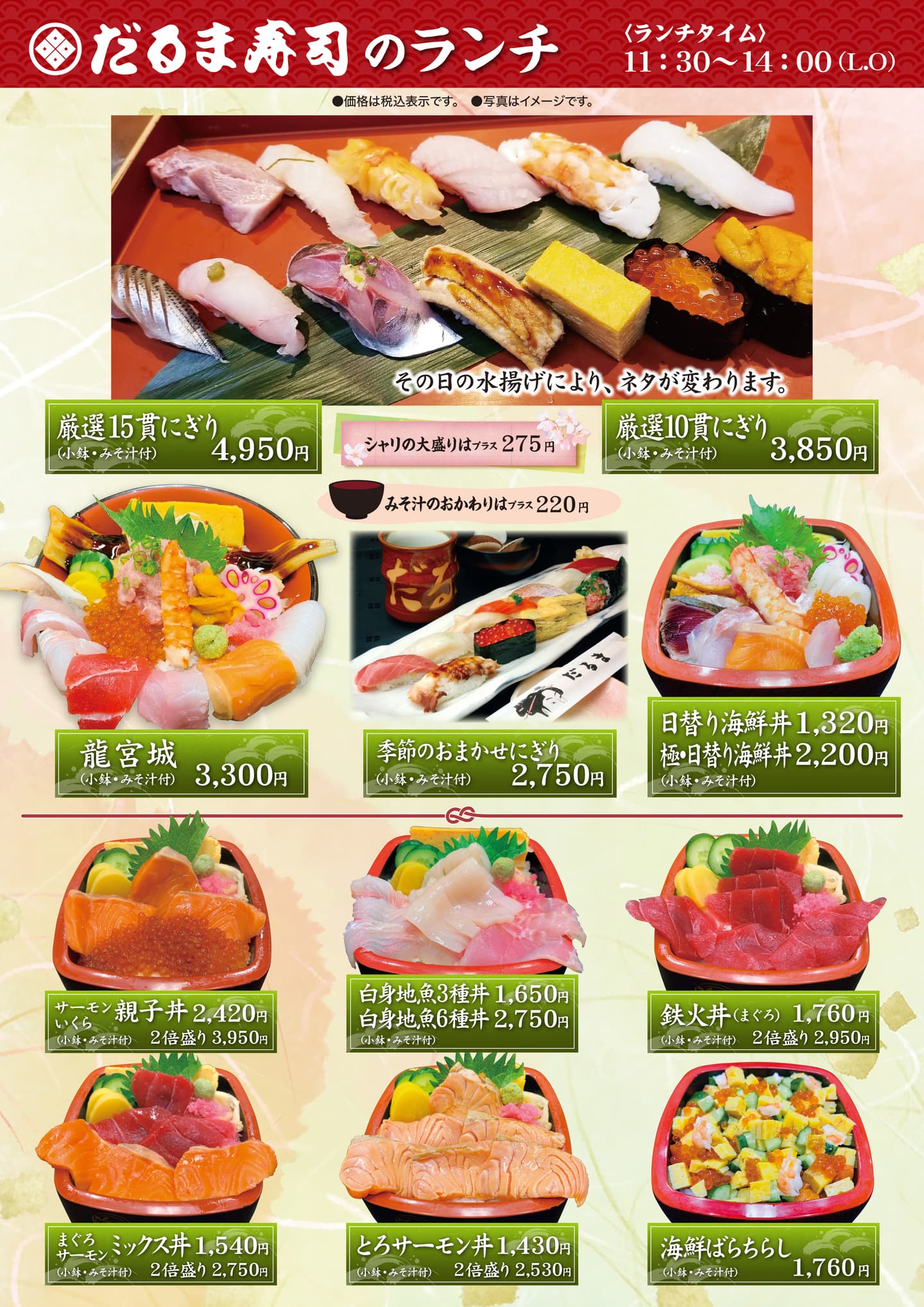 【ランチ】だるま寿司では、寿司だけではなく、海鮮ちらしも充実しております。
